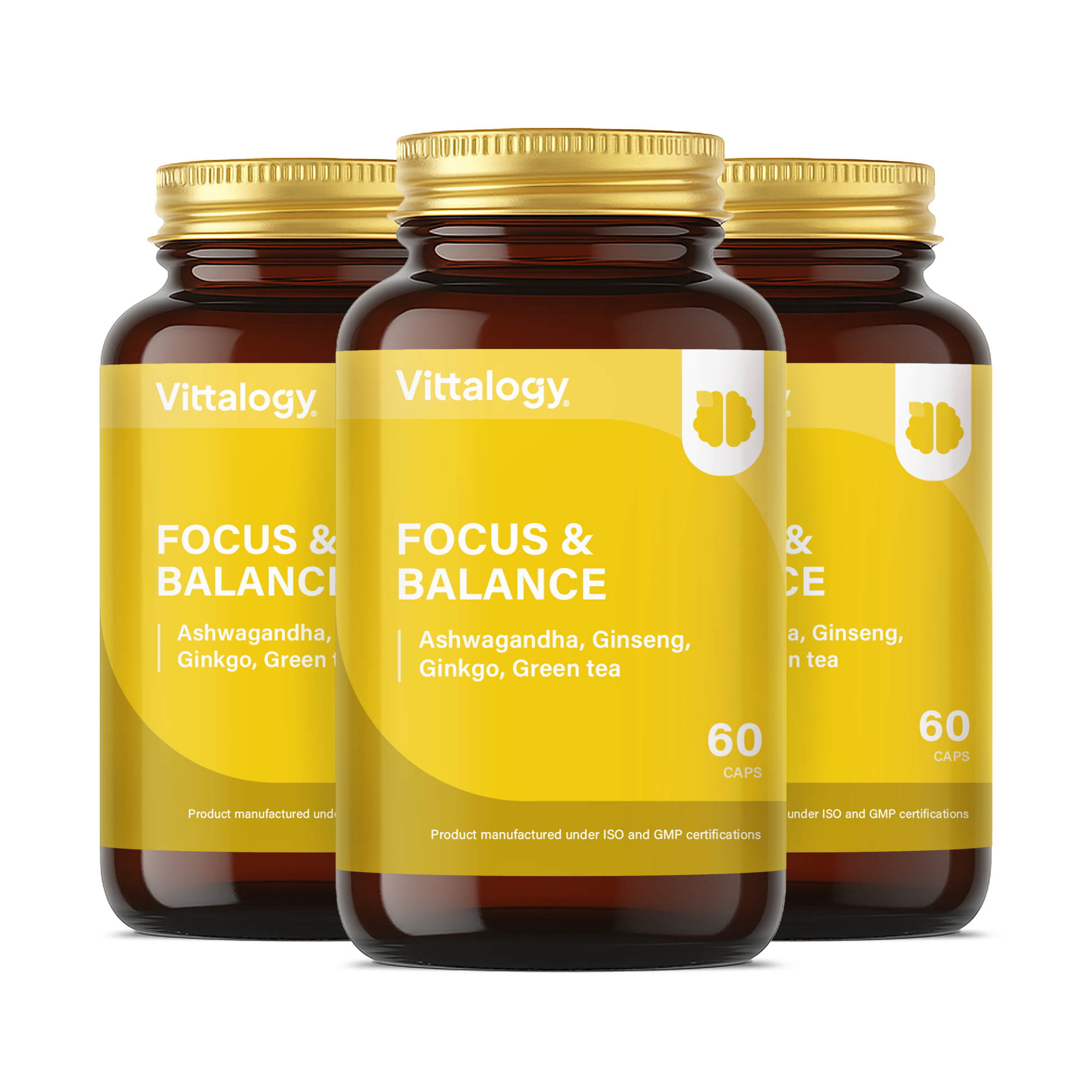 Focus & Balance de Vittalogy® es un nootrópico con Ginkgo Biloba, Bacopa Monnieri, Ginseng y Ashwagandha para potenciar la concentración, la memoria y el enfoque mental.